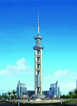 在造型的構(gòu)思上我們做了很多方案比較,華東院共提出5個(gè)方案,經(jīng)三大設(shè)計(jì)院12個(gè)方案競(jìng)標(biāo),最后選中了東方明珠。它首先是在結(jié)構(gòu)上求得突破,用帶斜撐的巨型空間框架取代單筒體結(jié)構(gòu)。