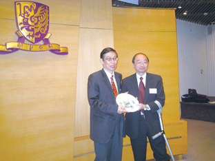 孫九林院士2009年12月在香港中文大學(xué)接受黃乃正副校長(右)贈送的紀(jì)念品