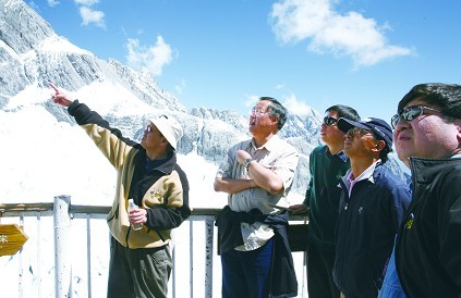 秦大河(左二)院士2009年在氣象臺站考察