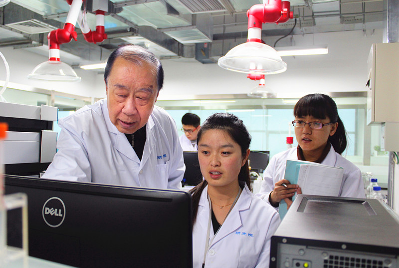 管華詩在實(shí)驗(yàn)室指導(dǎo)工作