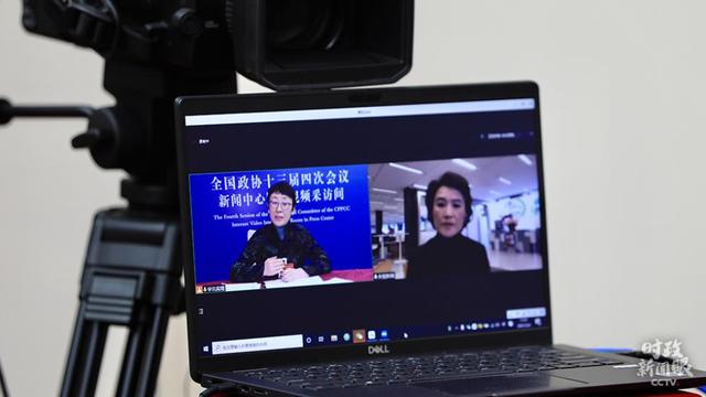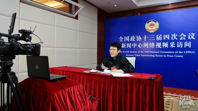 △當(dāng)天14:05,全國政協(xié)十三屆四次會議首場“委員通道”采訪活動舉行,依舊采用“隔屏對話”的網(wǎng)絡(luò)視頻采訪方式。(總臺央視記者鄭連凱、郭茜拍攝)