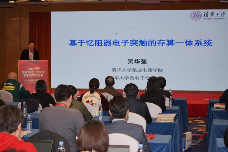 本場報告會聚焦集成電路領域在國內外期刊上發(fā)表的熱點、前沿、有重大科研進展的廣受關注學術成果,并邀請學術成果入選作者清華大學集成電路學院院長吳華強、清華大學類腦計算研究中心主任施路平、北京大學教授周治平、中國科學院半導體研究所半導體超晶格國家重點實驗室研究員劉力源分別作題為《基于憶阻器電子突觸的存算一體系統(tǒng)》《硅基光電子芯片與片上光源》《面向人工通用智能的天機芯片架構》《基于動態(tài)放大器的Delta-Sigma調制器及其在太赫茲成像中的應用》的學術報告?,F(xiàn)場氣氛熱烈,報告人、交流專家、現(xiàn)場觀眾以及網(wǎng)絡觀眾之間,不時進行交流研討、思想碰撞。