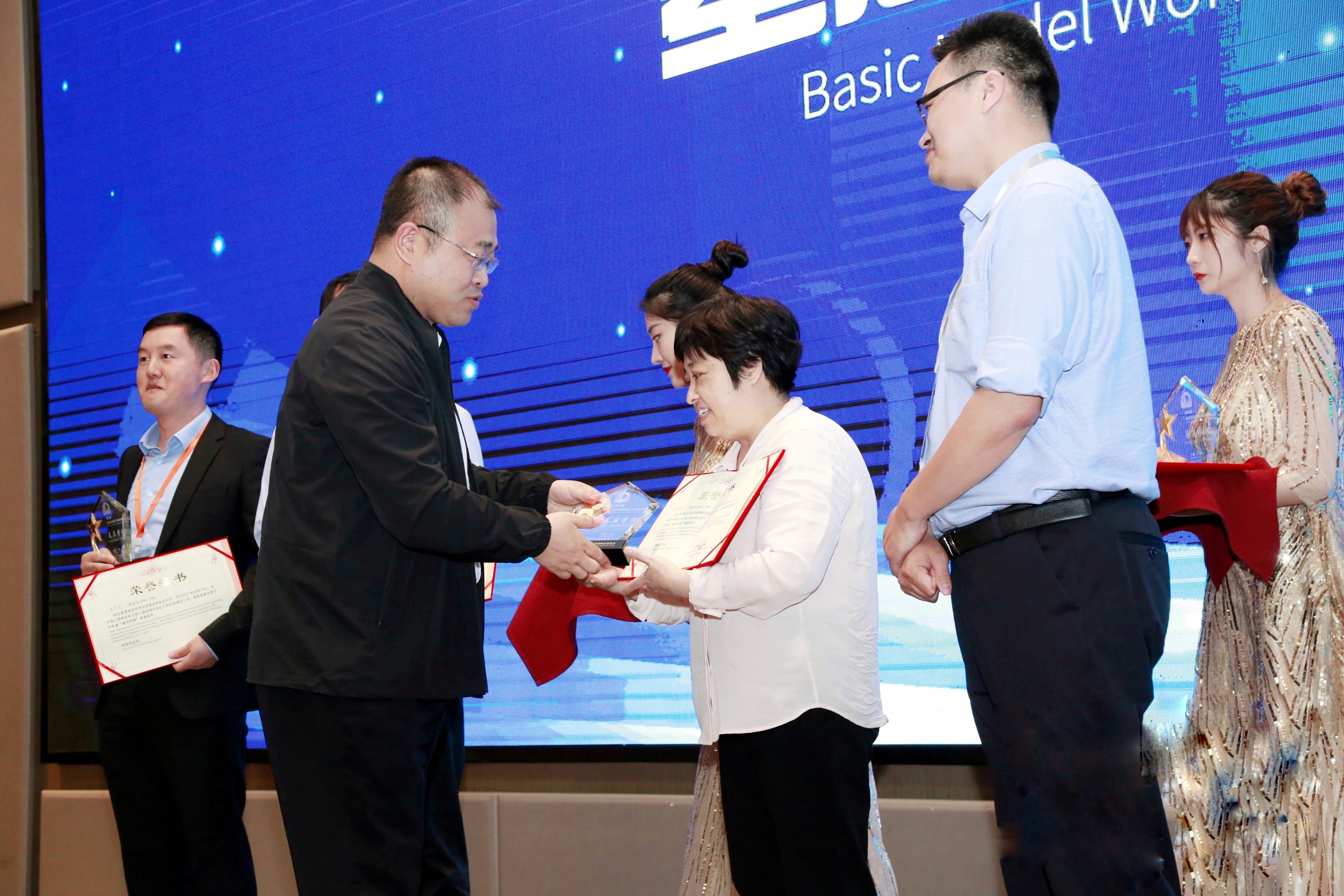 本刊常務(wù)副總編魏曉文為會議表彰的優(yōu)秀個人和企業(yè)頒發(fā)獎杯和證書