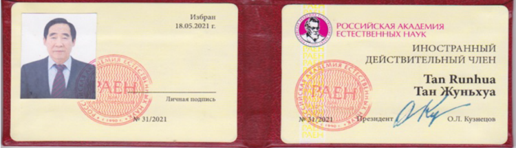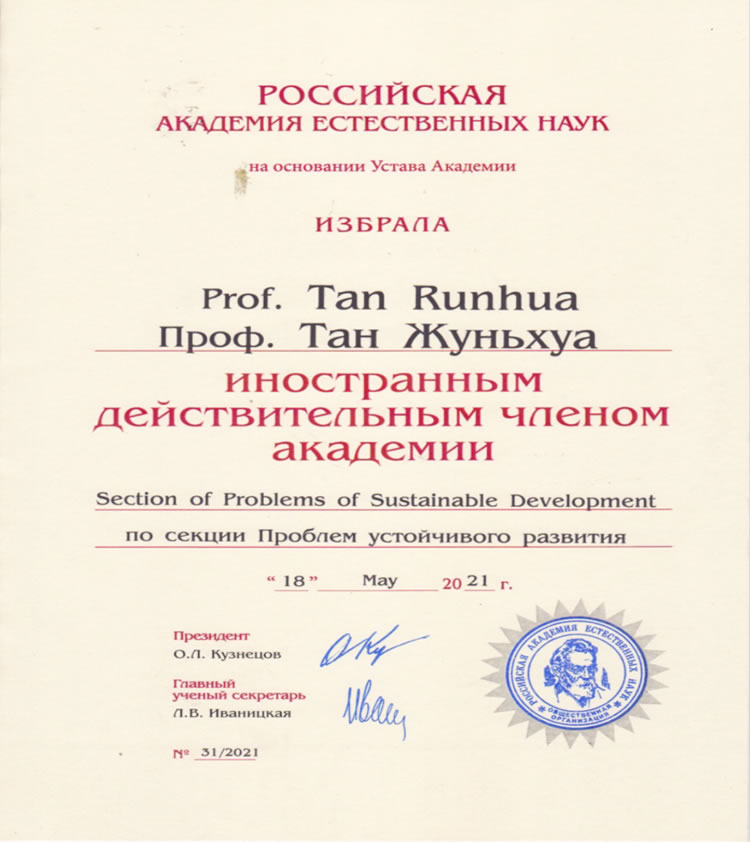 請(qǐng)接受我們真誠(chéng)的祝賀,您被選舉為俄羅斯自然科學(xué)院外國(guó)有效成員(院士),2021年5月18日,№ 31/2021決議。