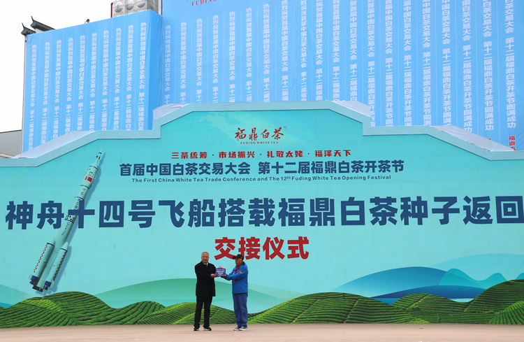 在近日開幕的首屆中國白茶交易大會暨第十二屆福鼎白茶開茶節(jié)上,舉行了神舟十四號飛船運載福鼎白茶種子返回交接儀式,這是去年跟隨神舟十四號載人飛船飛向太空、啟動太空搭載實驗白茶種子,承載著中國航天人對白茶育種的期望,也令無數(shù)福鼎茶人為之振奮。在現(xiàn)場來賓的共同見證下,中國高科技產(chǎn)業(yè)化研究會(以下簡稱“中高會”)副理事長、中國工程院國際合作局原局長康金城代表中高會將搭載返回的白茶種子轉(zhuǎn)交給福鼎市人大常委會主任蔡梅生。