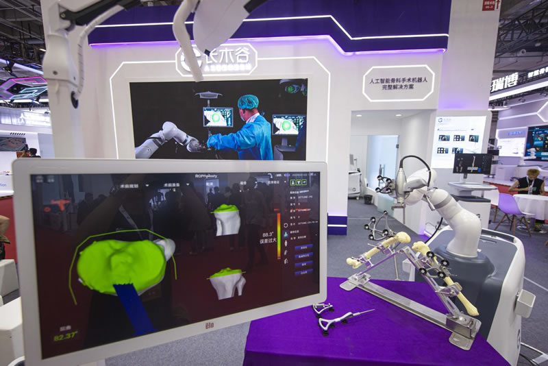 (北京亦莊企業(yè)在2023世界機(jī)器人大會(huì)上展出手術(shù)機(jī)器人系統(tǒng))