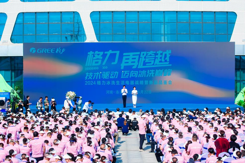 5月22日,以“格力再跨越,技術驅動,邁向冰洗巔峰”為主題的格力冰洗生活電器戰(zhàn)略暨新品品鑒會在河南洛陽舉辦。洛陽市副市長牛剛、格力電器董事長兼總裁董明珠以及各地經(jīng)銷商、消費者代表、媒體近1500余名嘉賓出席活動。