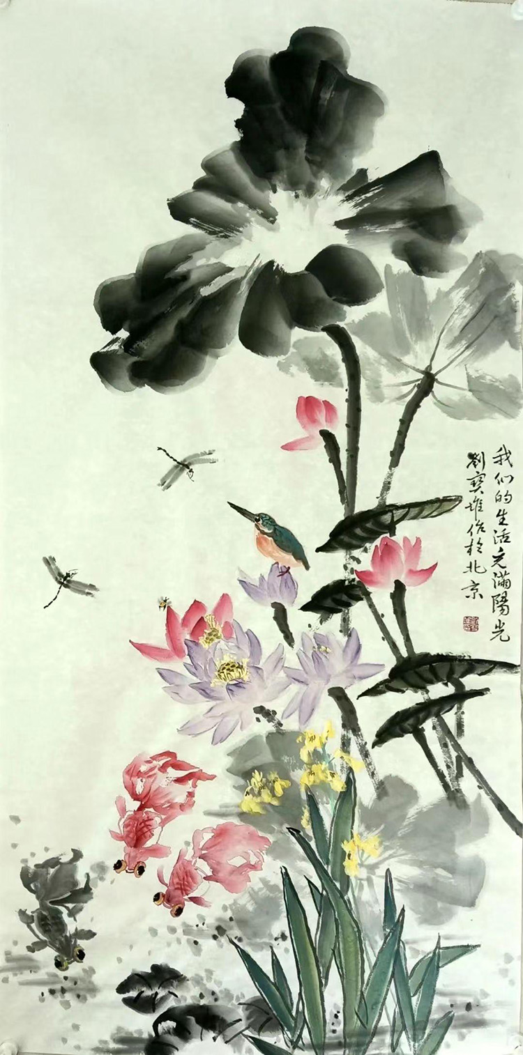 劉寶堆荷花美術(shù)作品《我們的生活充滿陽光》95x180