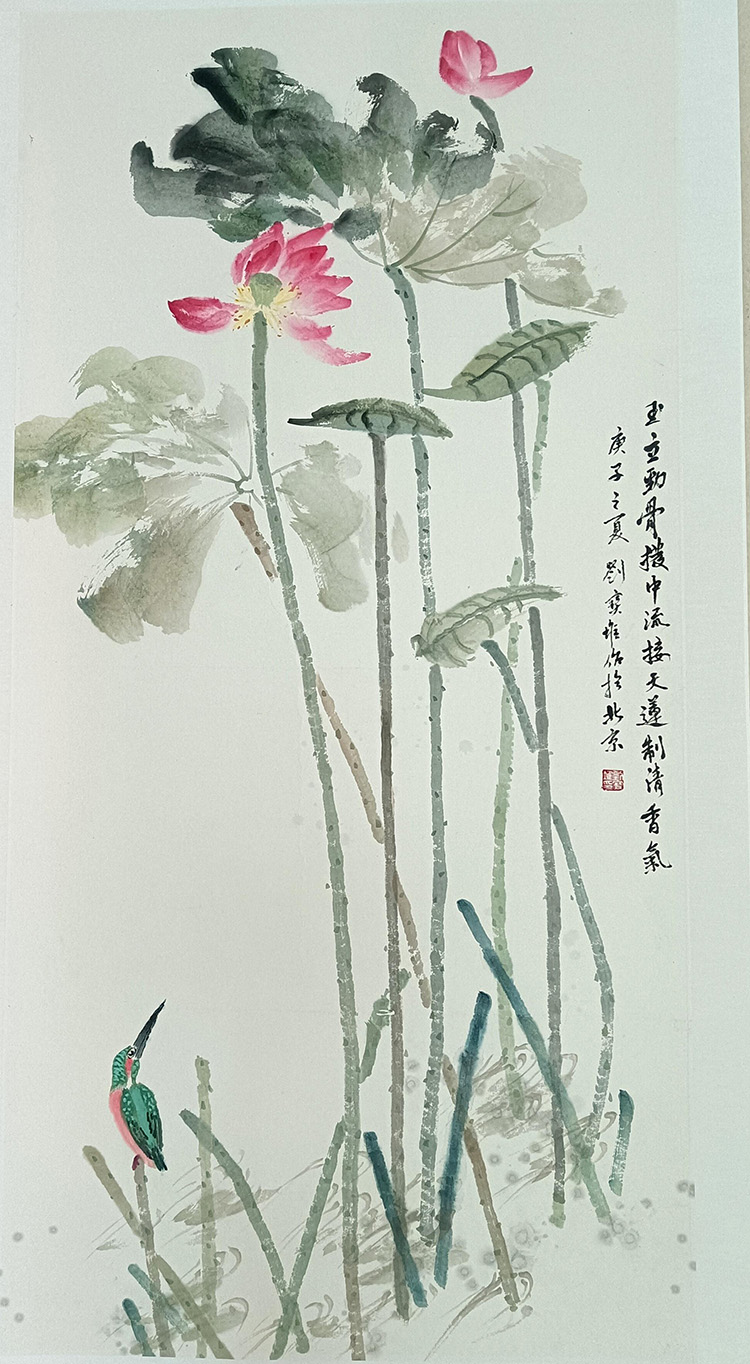 劉寶堆國畫荷花作品《玉立勁骨撥中流 接天蓮葉發(fā)清香?!?8x138