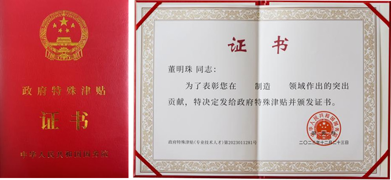 (董明珠獲國務(wù)院政府特殊津貼榮譽證書)