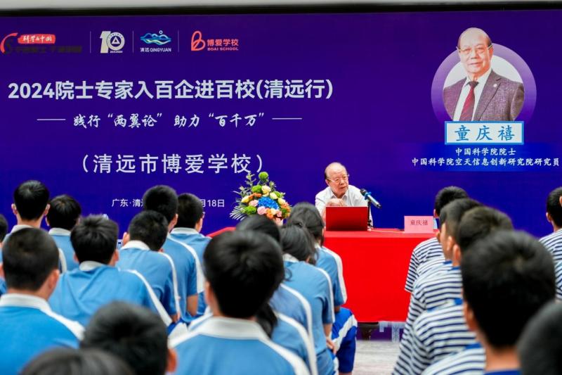 中國科學(xué)院院士童慶禧走進(jìn)清遠(yuǎn)市博愛中學(xué)開展科普講座。